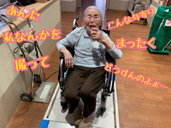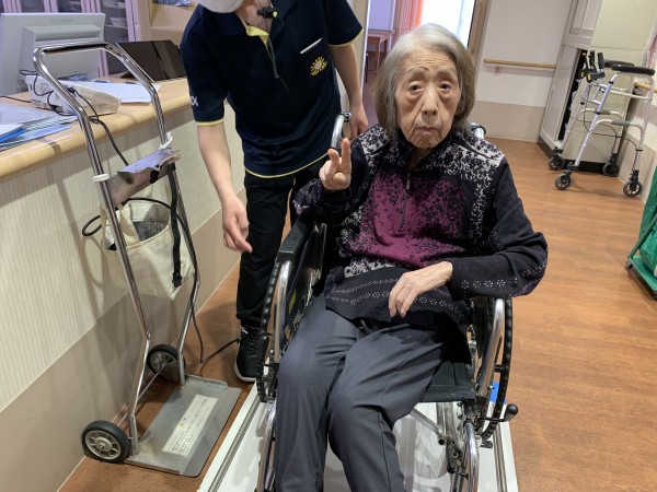 ご入居者様が体重測定をいたします。
