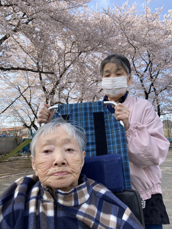 桜満開に咲いており皆様でホームに戻っても「桜きれいだったね」「桜見せてもらえるとは・・・」等
