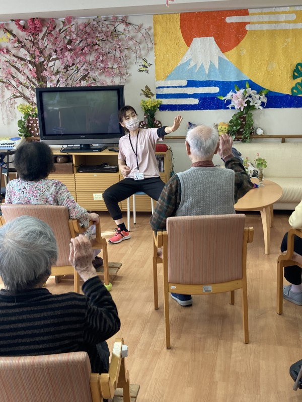 毎月恒例になりましたが、体操の高橋先生に施設に来ていただいて体操を行いました!