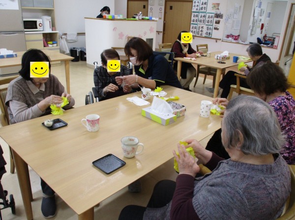 あるフロアのご利用者の皆様にぺーパーフラワーを制作していただきました。 皆様、「みんなで作ると楽しいね」と笑顔でおっしゃっていました。