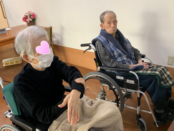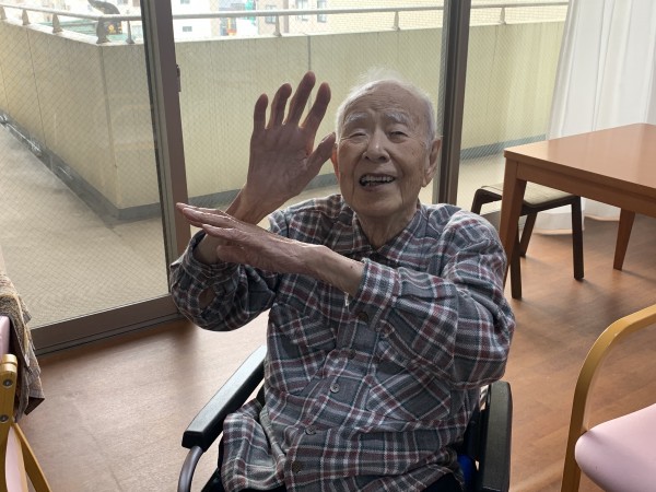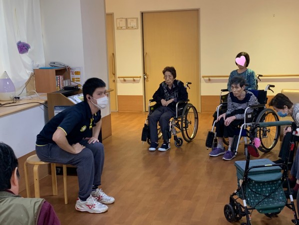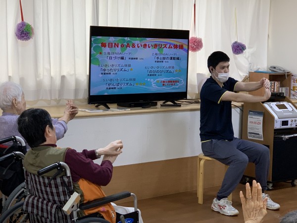 お隣のご婦人入居者様は、しっかりストレッチ。