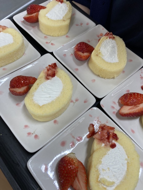 ロールケーキに添えました