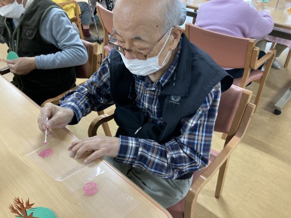 ご利用者様皆さん、桜満開にしようと頑張って絵具を付けていました。