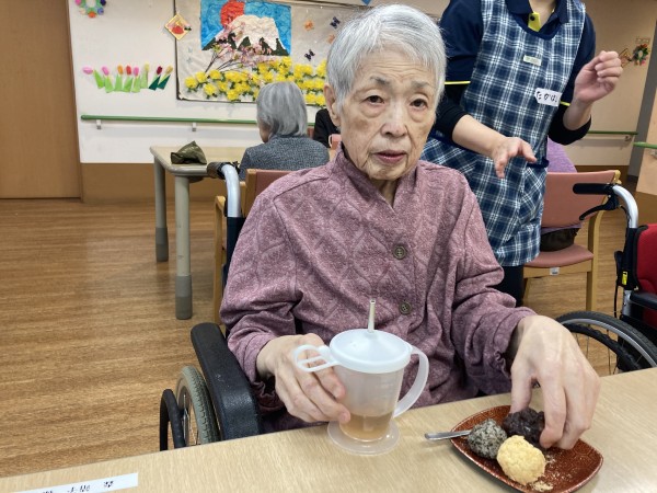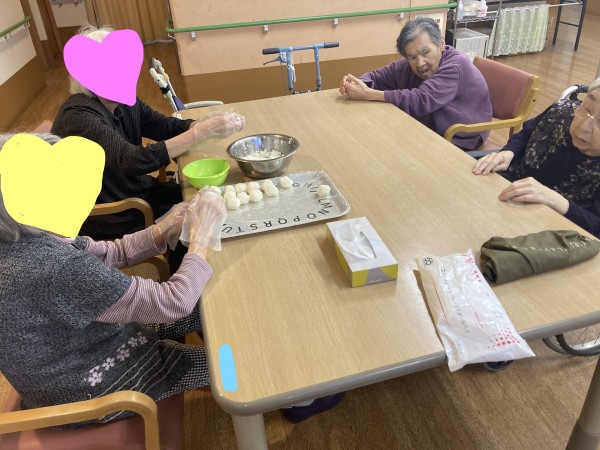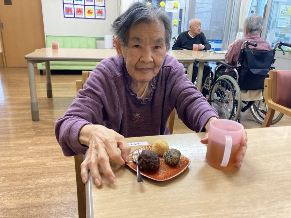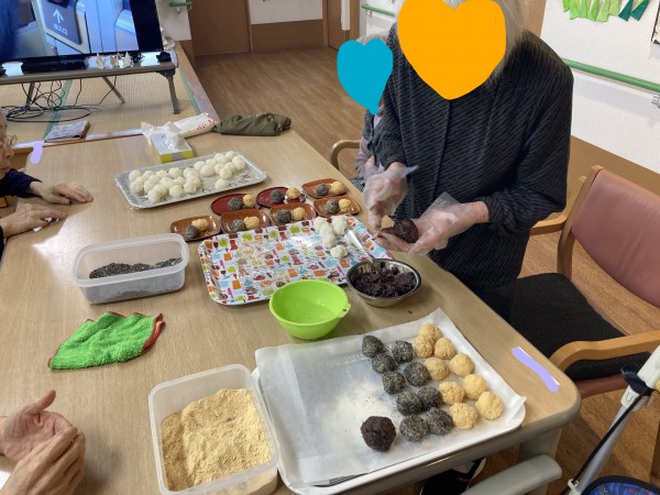 3時のおやつに、入居者様にお手伝いして頂き、おはぎ作りをしました♪