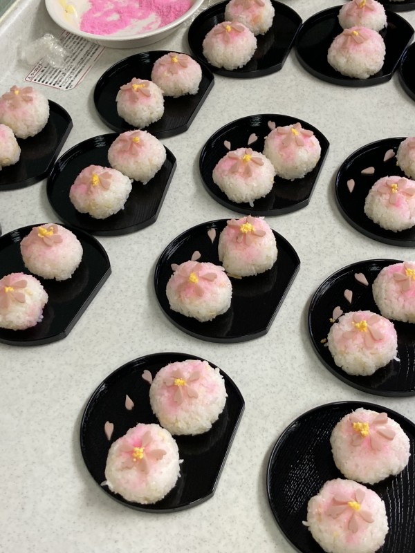 ❀桜のてまり寿司。。桜の小さな花弁の型は小池職員がアルミ板で手作りしました!!