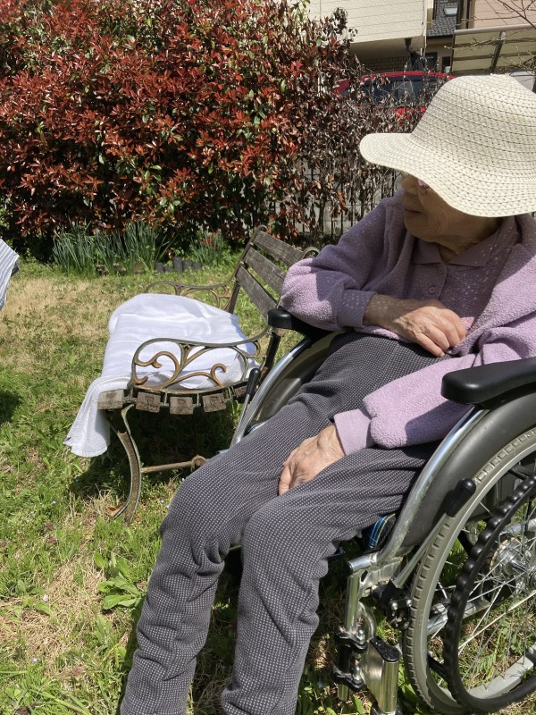 今日は中庭に出て、皆さまと外気浴を行いました!