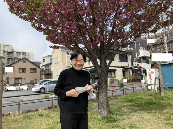八重桜をバックに写真撮影を行いました。