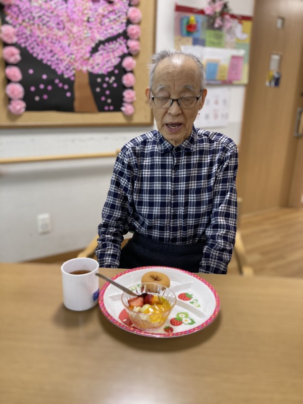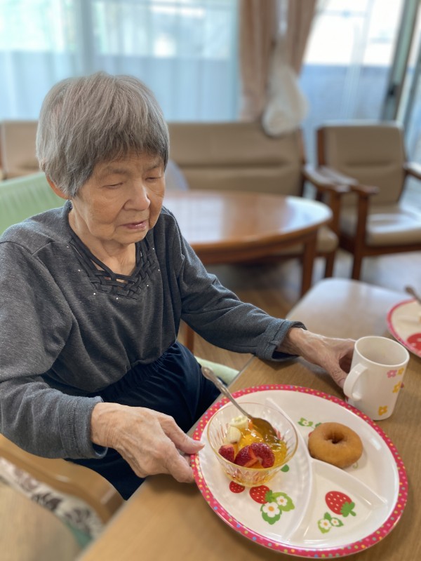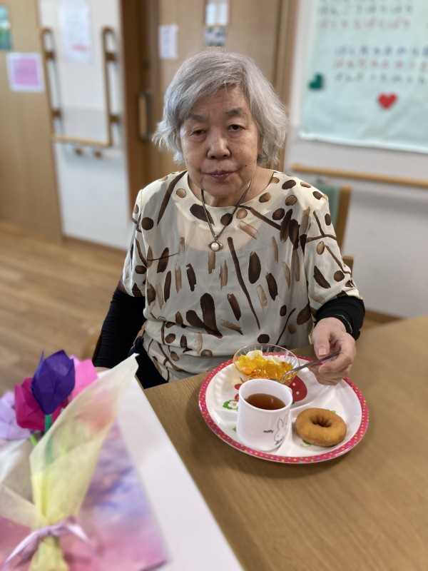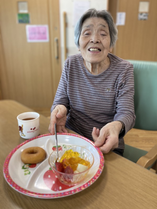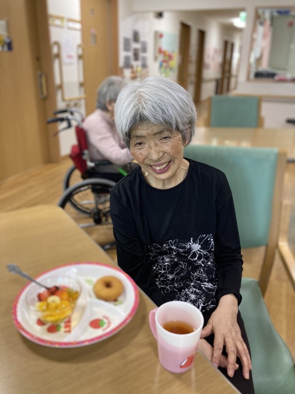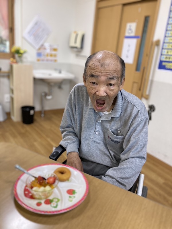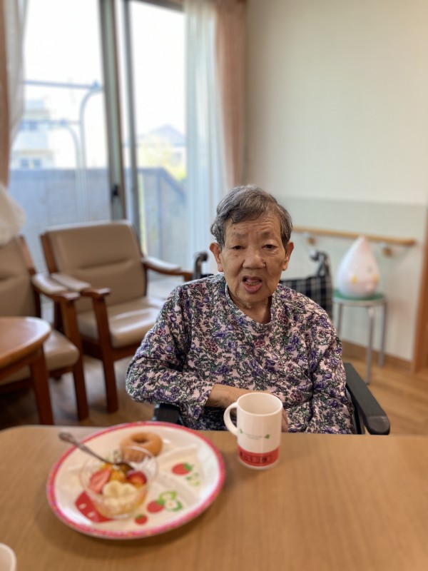 おやつ時間に、他の入居者様とスタッフ全員で”バースデー”をお祝いしました(^▽^)/