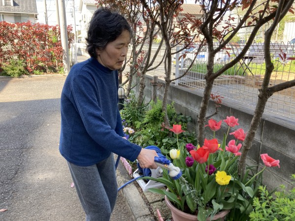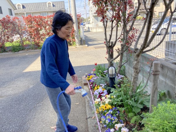 花の手入れも好きで「お水やらなくていいの?」と…せっかくなので水やりをしてもらいました♪