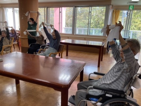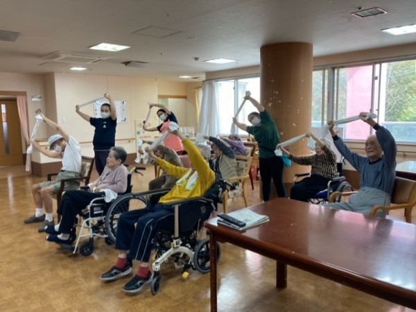 ご利用者様はもちろん、スタッフも一緒に熱心に体操に取り組んでおりました☺