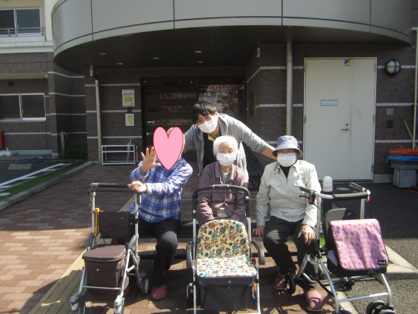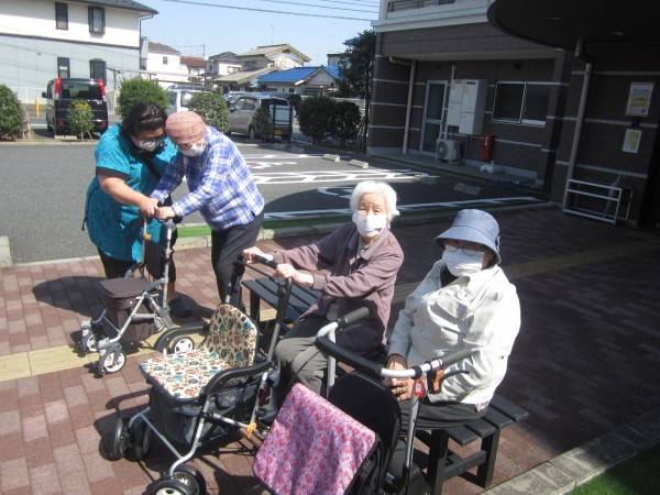 ご利用者様の皆様で外気浴や日光浴のレクリエーションを行っています\(^o^)/