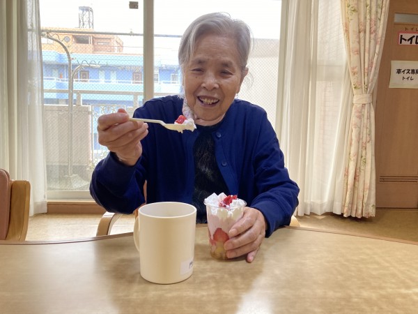 先日、手作りおやつ(苺のフルーチェパフェ)を、