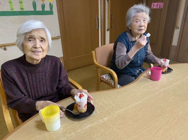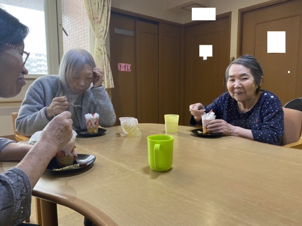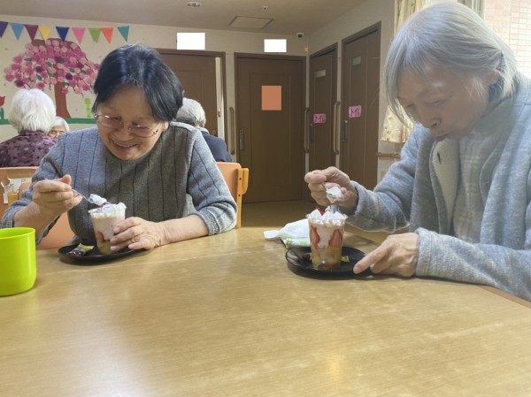 3Fご利用者様と一緒に、苺のフルーチェパフェを