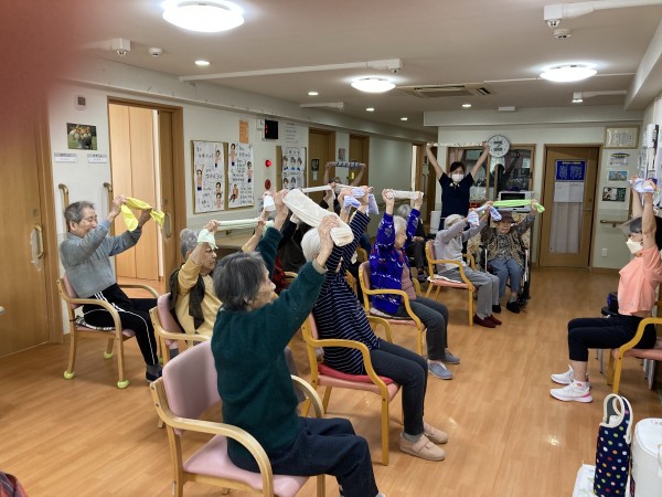 おなじみのタオルを使った運動も