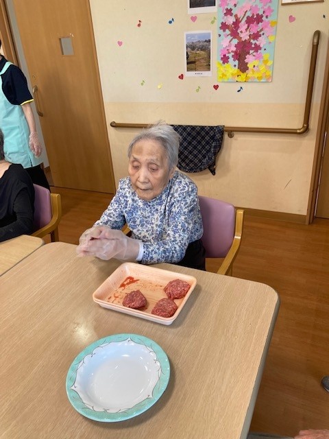 皆さん楽しそうにハンバーグを作ってますね( ^^) _U~~