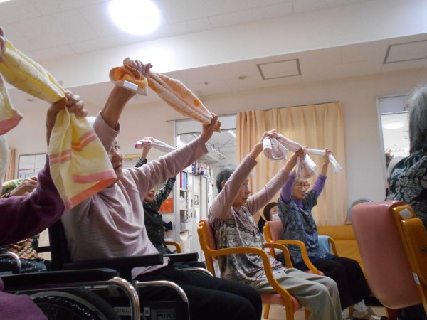 タオルを使って全身を動かし、健康の維持に努めました。