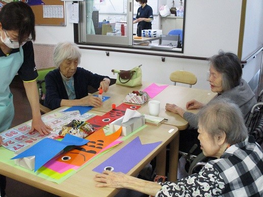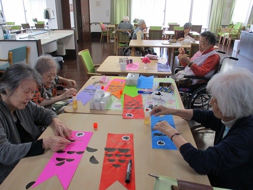 今日は皆で5月のカレンダーの鯉のぼりを作りました(^^)