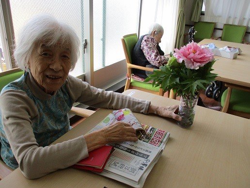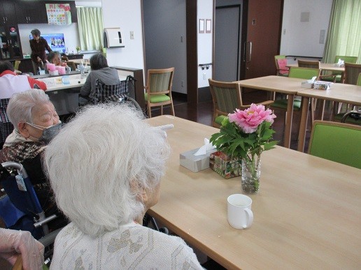 先日スタッフがお家から牡丹の花を持ってきてくれました(^^♪