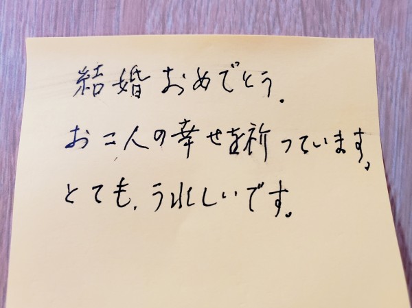 こんな嬉しい話を聞いて嬉し泣きです。結婚式にはいけないけど、