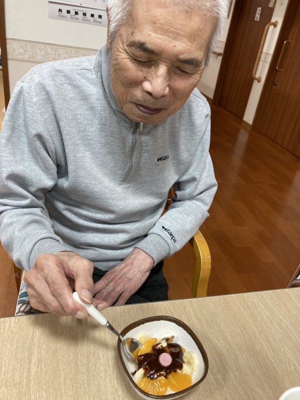 持病がある為ケーキは食べれませんが、スタッフが知恵を絞った手作りデザートを「美味しい!」と召し上がってくれました!