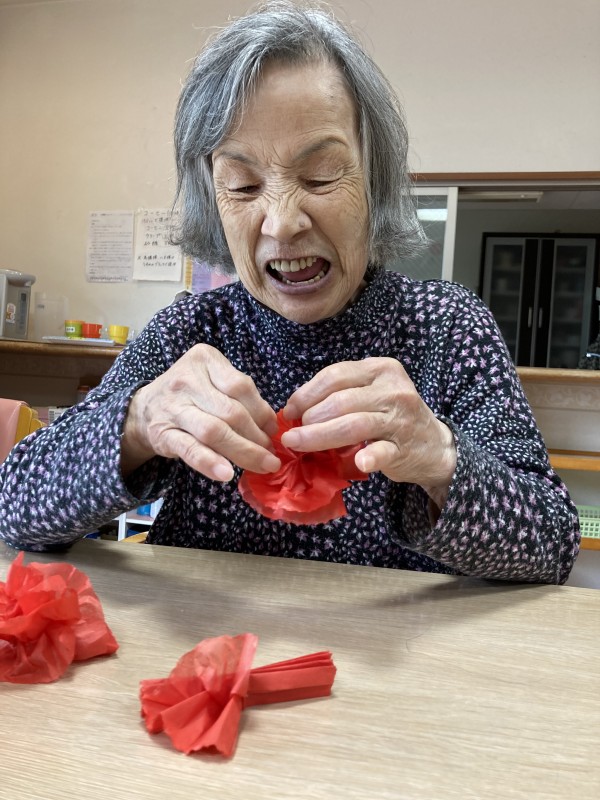 職員が「5月は母の日ですよ~」と伝えると利用者様が「私はもうおばあちゃんよ~」と笑いながら手作業!