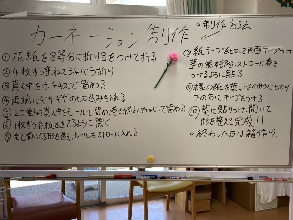 無事制作も終わり一安心です。作ったカーネーションはお家に飾って下さいね?