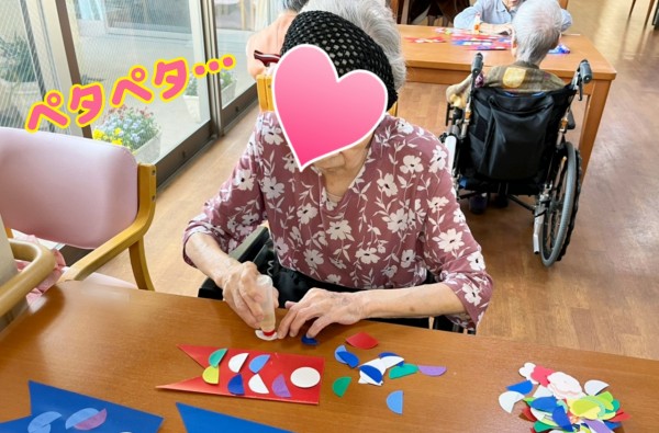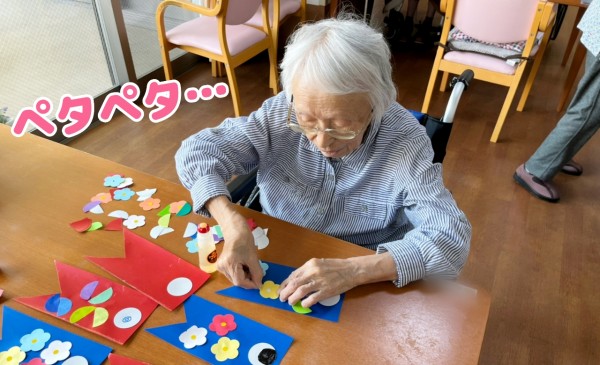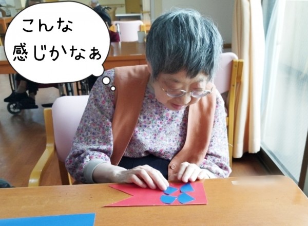 皆様、思い思いにお花のウロコを貼り付けていきます。
