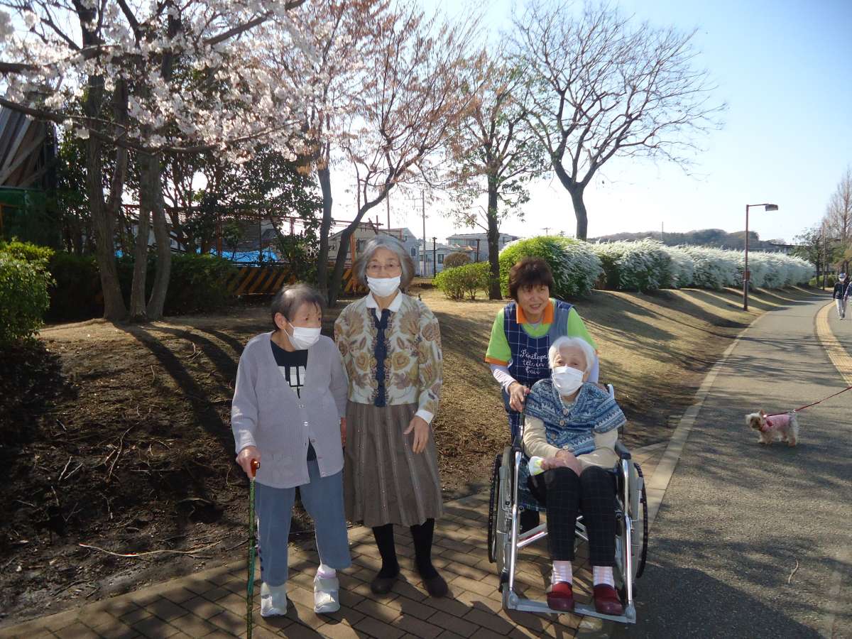 満開の桜に「外は気もちいいね。綺麗だね!!」と喜ばれて、記念撮影を致しました。
