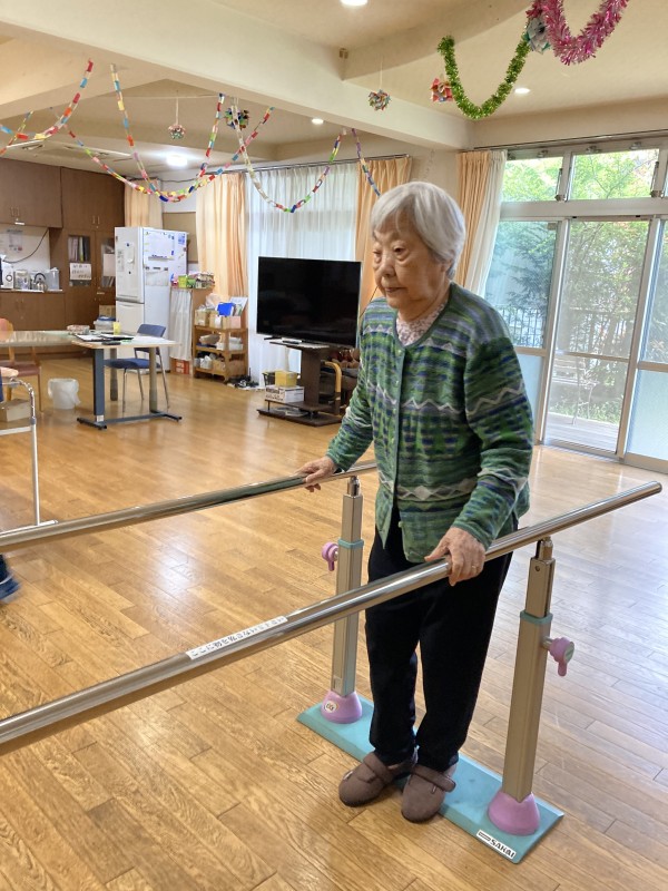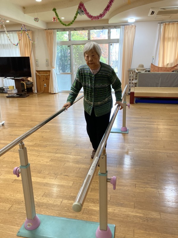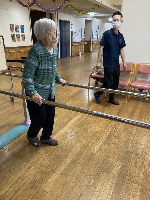 すり足歩行になりがちとのことで、意識をしながら足を上げて歩きます!