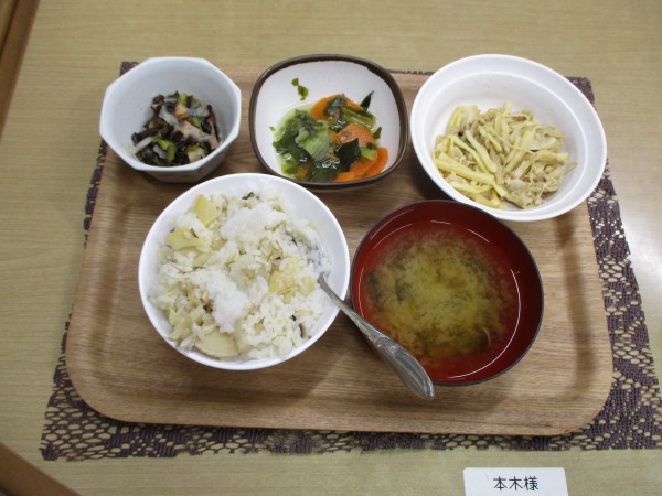 先日、1階の職員より「たけのこ御飯」を頂きました。