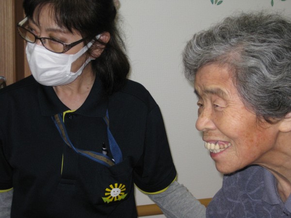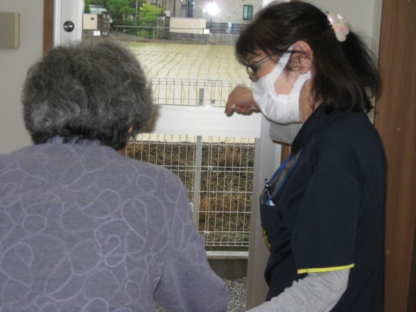 おしゃべりをしながら廊下を歩いています。歩かなくちゃねと楽しまていました!!『あら、もう田んぼに苗を植えたんだね!早いんだね!』と懐かしそうに話されていました!(^^)! 笑顔が素敵ですね( ^ω^)・・・
