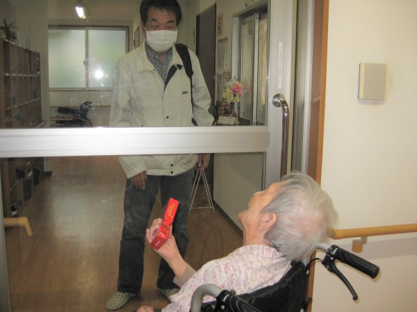 こんにちは!グループホームみんなの家・あきがせの介護ブログです!よろしくお願いいたします。息子様とガラス越しにお会いした時のご様子です!!
