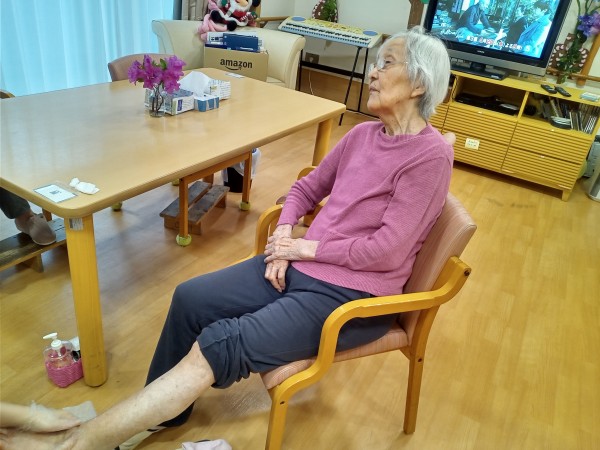 ベッドで行うこともありますが、この日は希望で食席で行いました。