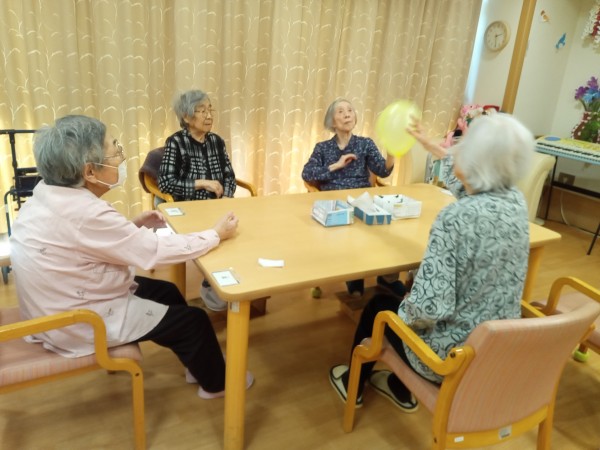 先日、卓球のお話の流れから久しぶりに風船バレーを行いました♪意外と風船のコントロールが難しく、たいへん盛り上がりました!