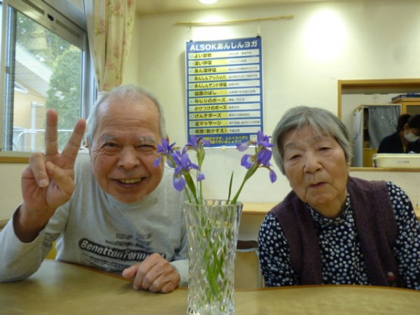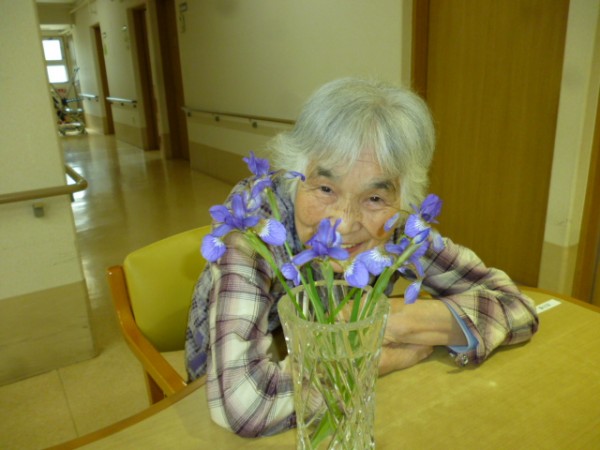 職員の自宅に咲いていたあやめを持って来て