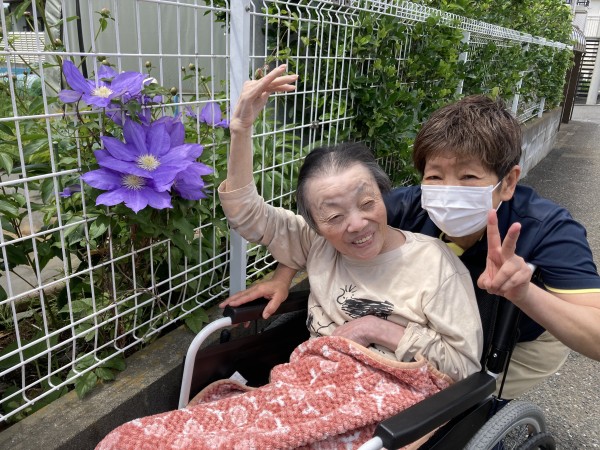 「てっせん」の花がキレイに咲いたので「てっせん」が大好きな利用者様をご案内!