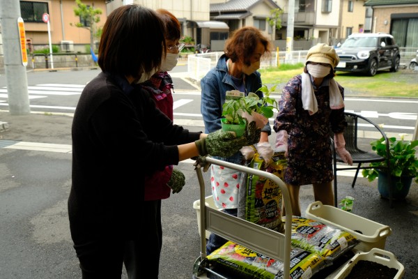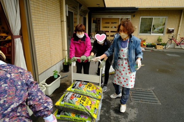 元気な苗&重い重い土を皆さんで運びます(^^♪
