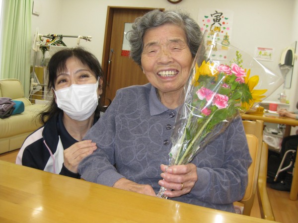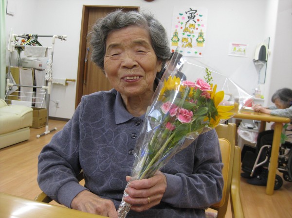 こんにちは!グループホームみんなの家・あきがせの介護ブログです!よろしくお願いいたします。お嫁様がお花をお持ちくださいました!! いつもありがとう!と感謝されていました!(^^)!