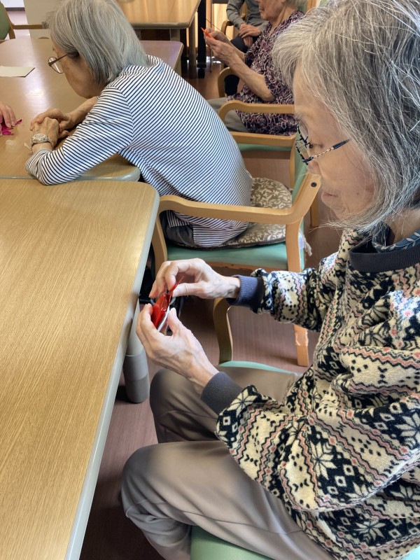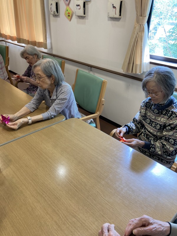 スタッフに折り方を聞きながら一所懸命に折り紙を折る姿にわたくし感動いたしました