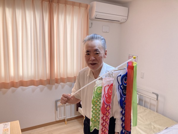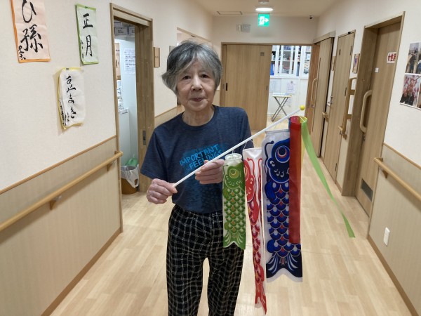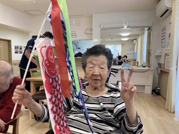 鯉のぼりをお渡しすると「まあ!綺麗だね~!」と言われてニッコリとピースサインを出して喜んでくれました(^_^)v