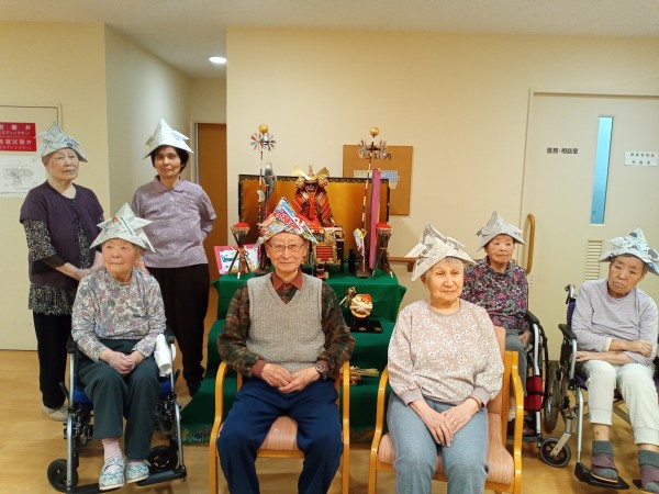 午後には、新聞紙でたくさんの兜を作りました!気に入ってしばらく被っている方もいらっしゃいました。
