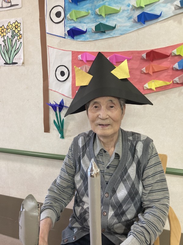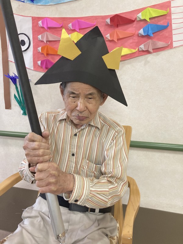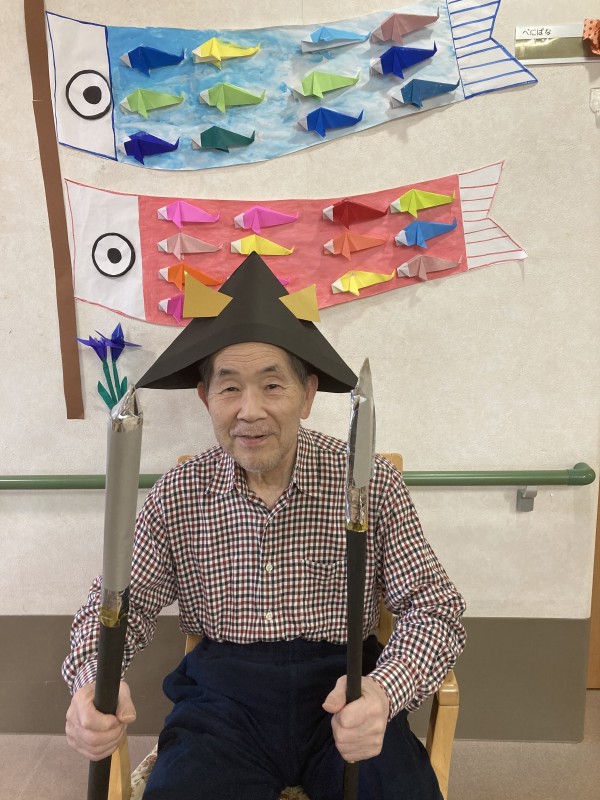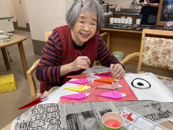 鯉のぼりを折り紙で折って、大きなこいのぼ