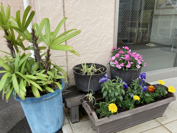 園芸が得意な職員が土の準備から花植えまでやってくれました! 可愛いウエルカムフラワーの出来上がりです(^o^)/