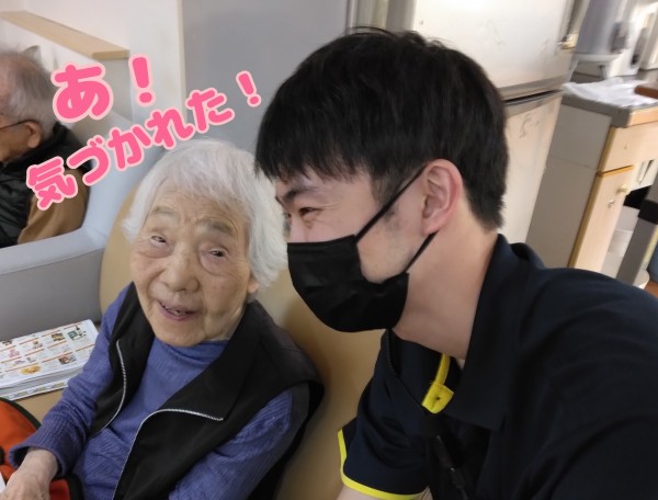 一生懸命お話しされるのを、髙村ケアスタッフが