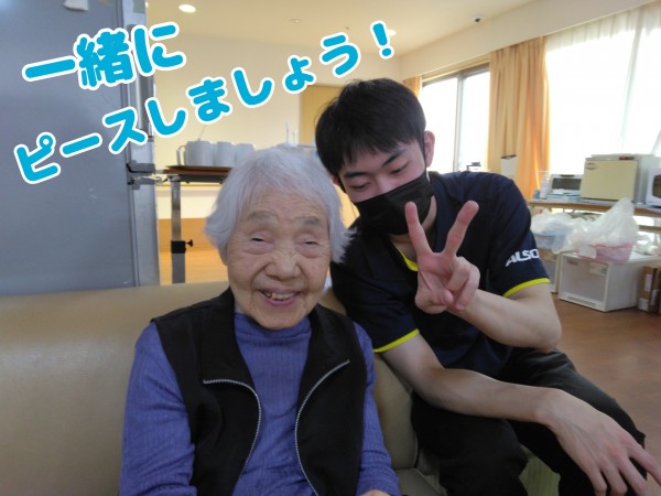 102才の入居者様とお話し中です。