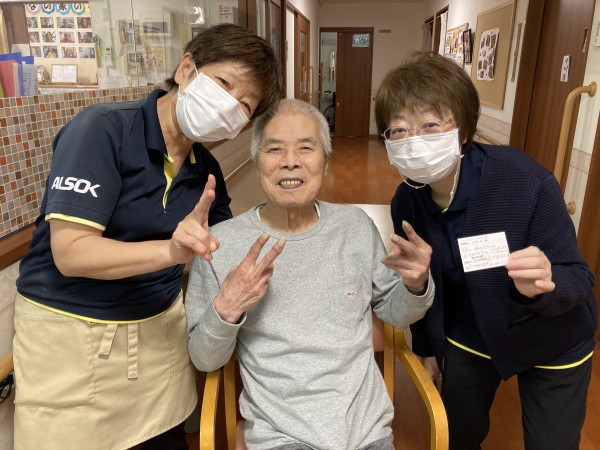 記念に利用者様と一緒に!利用者様もとてもいい笑顔です。