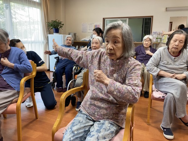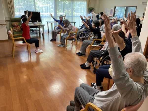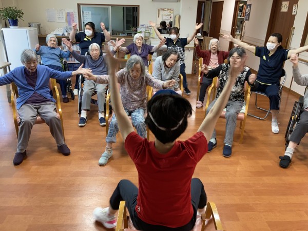 認知症予防介護や健康促進or体力維持などで会社全体で訪問運動教室やリモートでのノーアエクササイズ・リズム体操・あんしんヨガと定期的に取り組んでいます。
