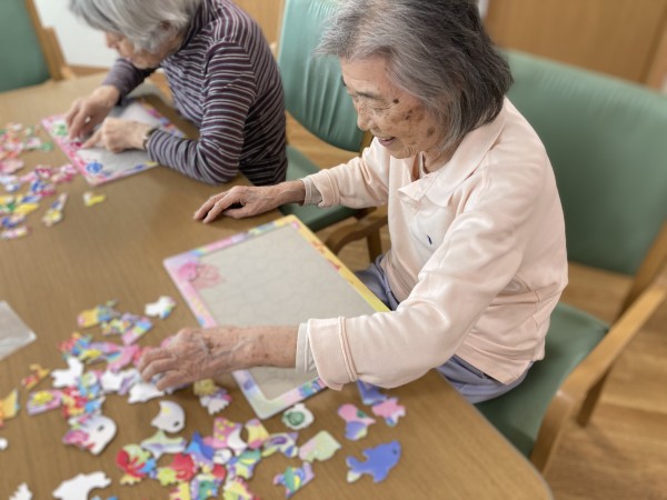 身体を動かすレクリエーションである体操はもちろん、脳トレの一環として、ジグソーパズルやぬり絵などにも取り組んで