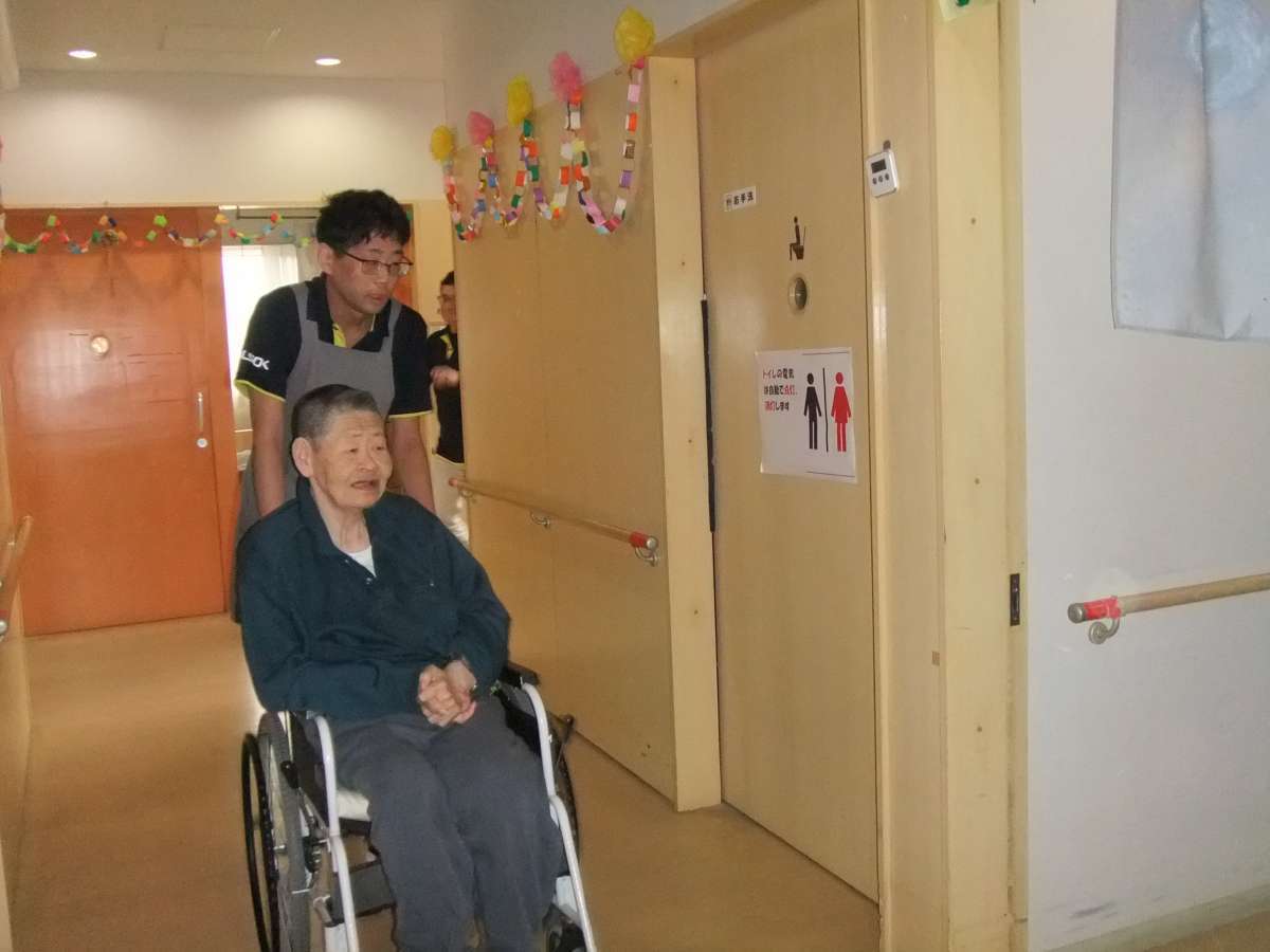 夜間を想定し、夜勤介護職員二人で行いました。ご利用者様の安全を確保して