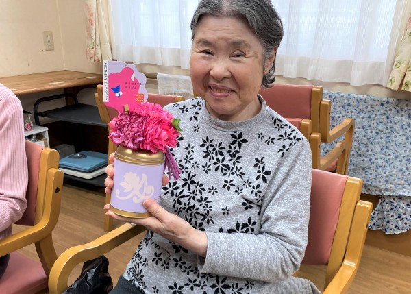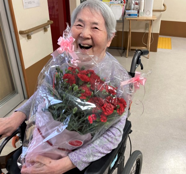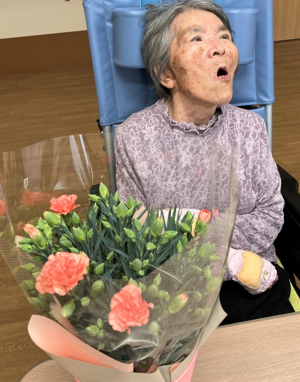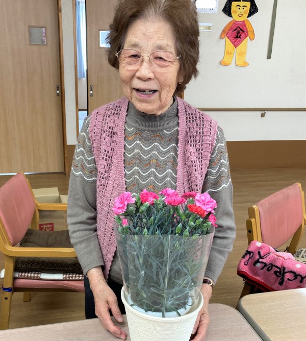 特大の真っ赤なカーネーションのプレゼントに大喜び!